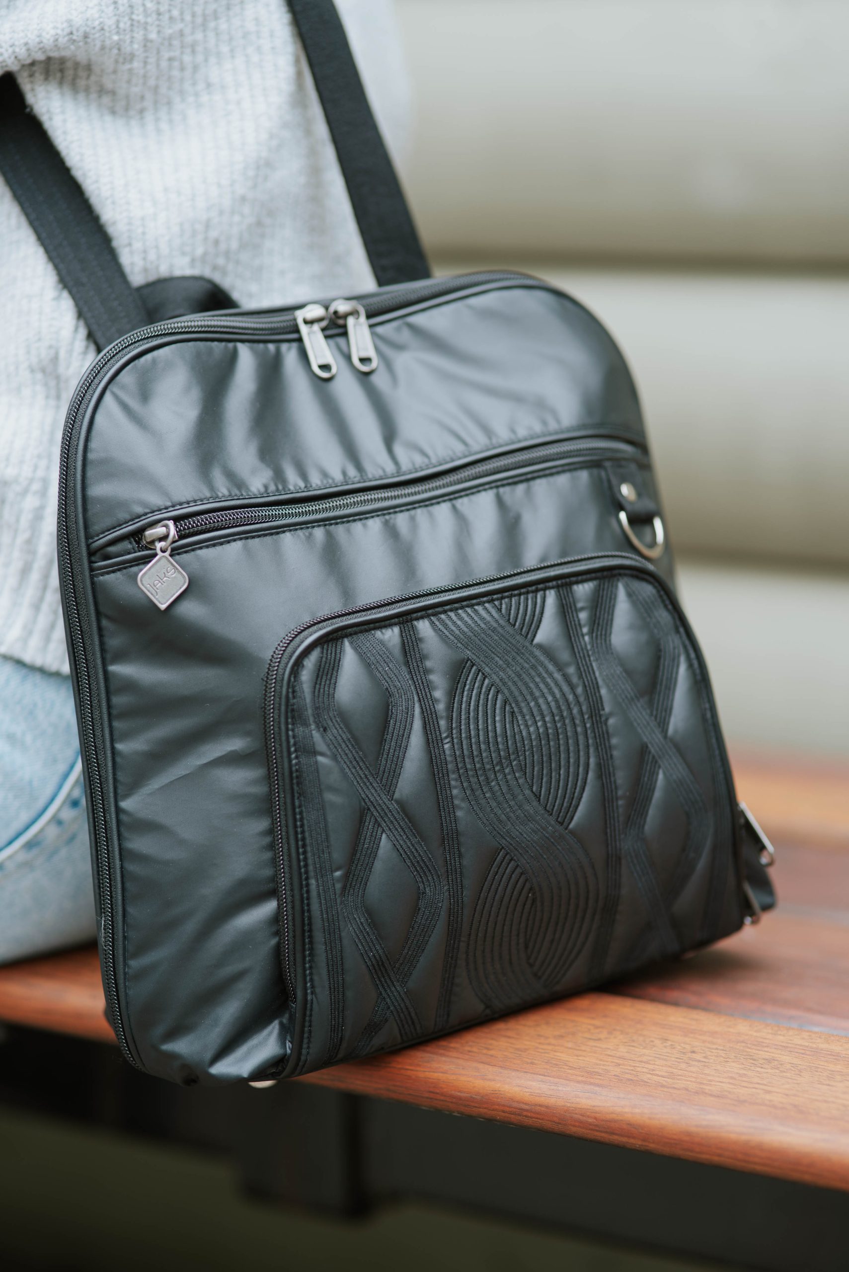 This ultra-functional convertible bag can be carried in 2 ways, either as a backpack or as a shoulder bag. To transform it into a backpack, simply pull on the 2 straps at the back of the bag. Its central section and multiple pockets allow optimal and efficient storage. The central section creates 2 compartments to easily separate the contents of your bag. Its fine embroidery gives it a timeless look.