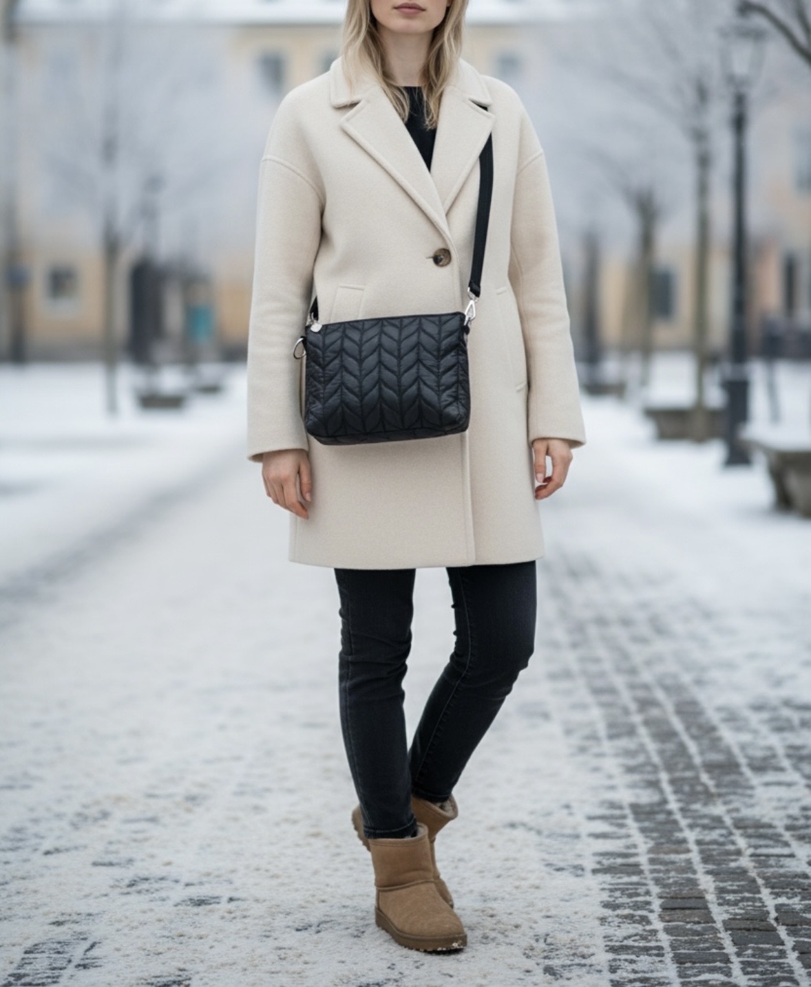 This classic little shoulder bag is ideal for everyday use. Its clean lines and tone-on-tone embroidery give it a timeless and elegant look.